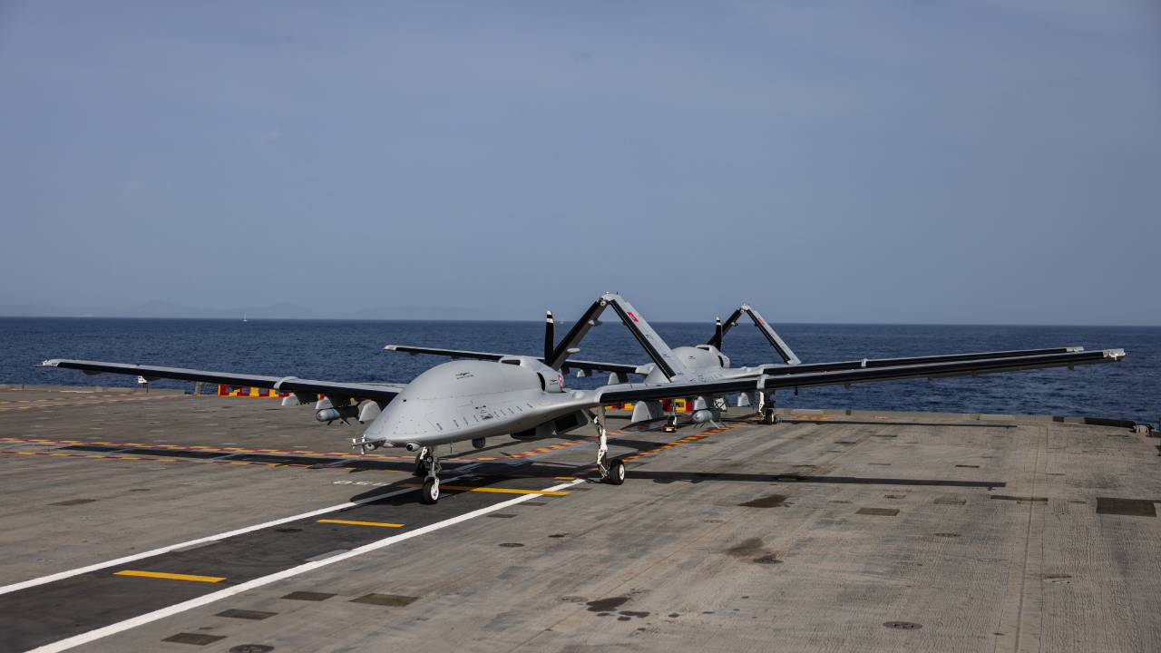 Baykar tarafından geliştirilen Bayraktar TB3 silahlı insansız hava araçları, Türk Deniz Kuvvetleri Komutanlığı tarafından icra edilen DENİZKURDU-2025 tatbikatı kapsamında TCG Anadolu gemisine konuşlandırıldı. Keşan’dan havalanan ve PT-3 ile PT-4 kuyruk numaralarını taşıyan iki TB3 SİHA, 9 Mayıs 2025 tarihinde başarıyla gemiye intikal etti. Konuşlanmanın ardından gemi üzerinde mühimmat yükleme testleri uygulandı. Her iki SİHA da […]